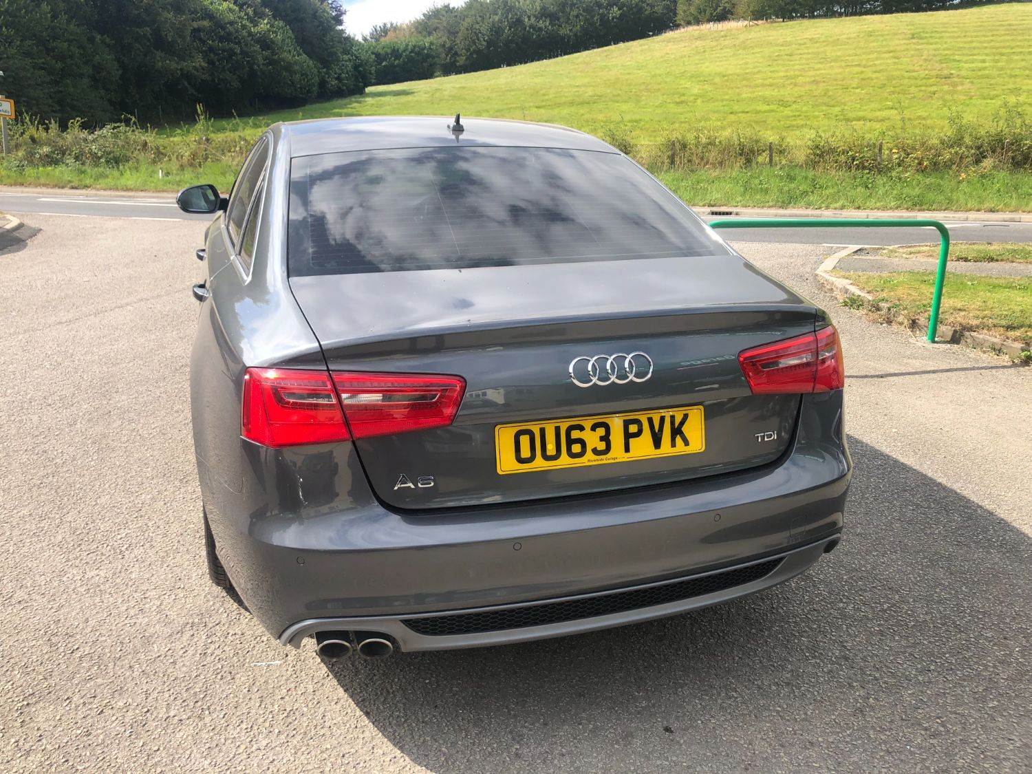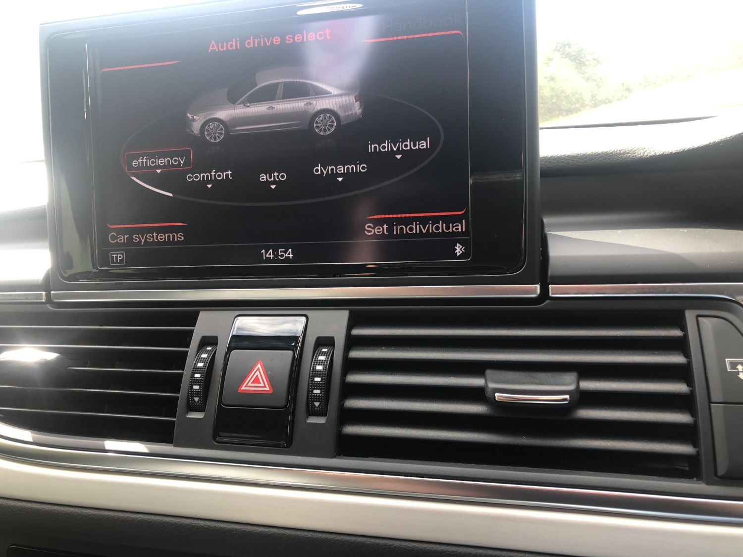 5 door 2013 Audi A6 S Line driven 66,000 miles. Grey exterior, Black interior with leather seats. A center folding screen controls the features: Bluetooth radio, CD player, hands free calls, onboard navigation and drive mode selection. These are controlled from the multimedia functions on the steering wheel and center console. Other features include A/C, Heated seats and parking assists.