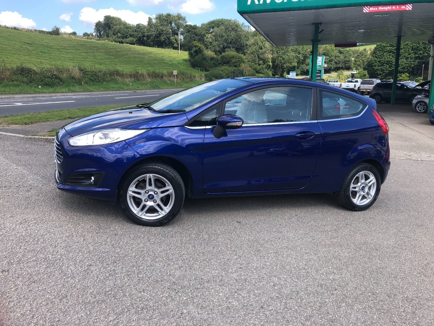 5 door 2016 Ford fiesta driven 13,900 miles. Blue exterior with a cloth black interior. Features include Bluetooth/CD/AUXUSB radio, Air Conditioning, hands free calls, Ford Eco Mode and App Sync to a mobile device.