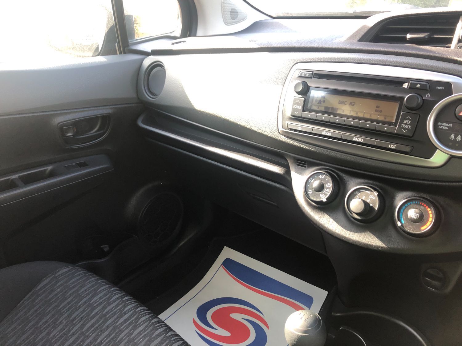 5 door 2013 Toyota Yaris driven 32,000 miles. Black exterior with a grey cloth interior. Features include Radio and Air-conditioning.